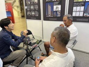 現場民眾與業界夥伴最關注的議題,包含老屋升級為綠建築的可行性、節能數據與居住舒適度。我們的團隊提供專業解說,並與其他建築師事務所、材料商及政府單位深入交流,共同探討低碳城市的未來方向。